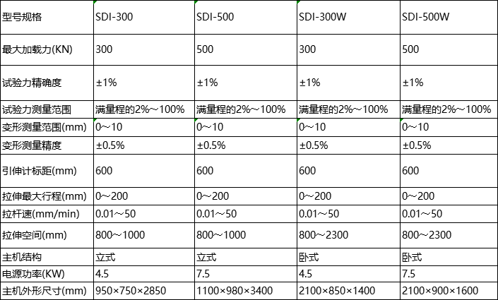 主機為四立柱或雙立柱剛性框架,有立式和臥式兩種機型,絲杠調(diào)節(jié)拉頭移動,加載速度無級設定。