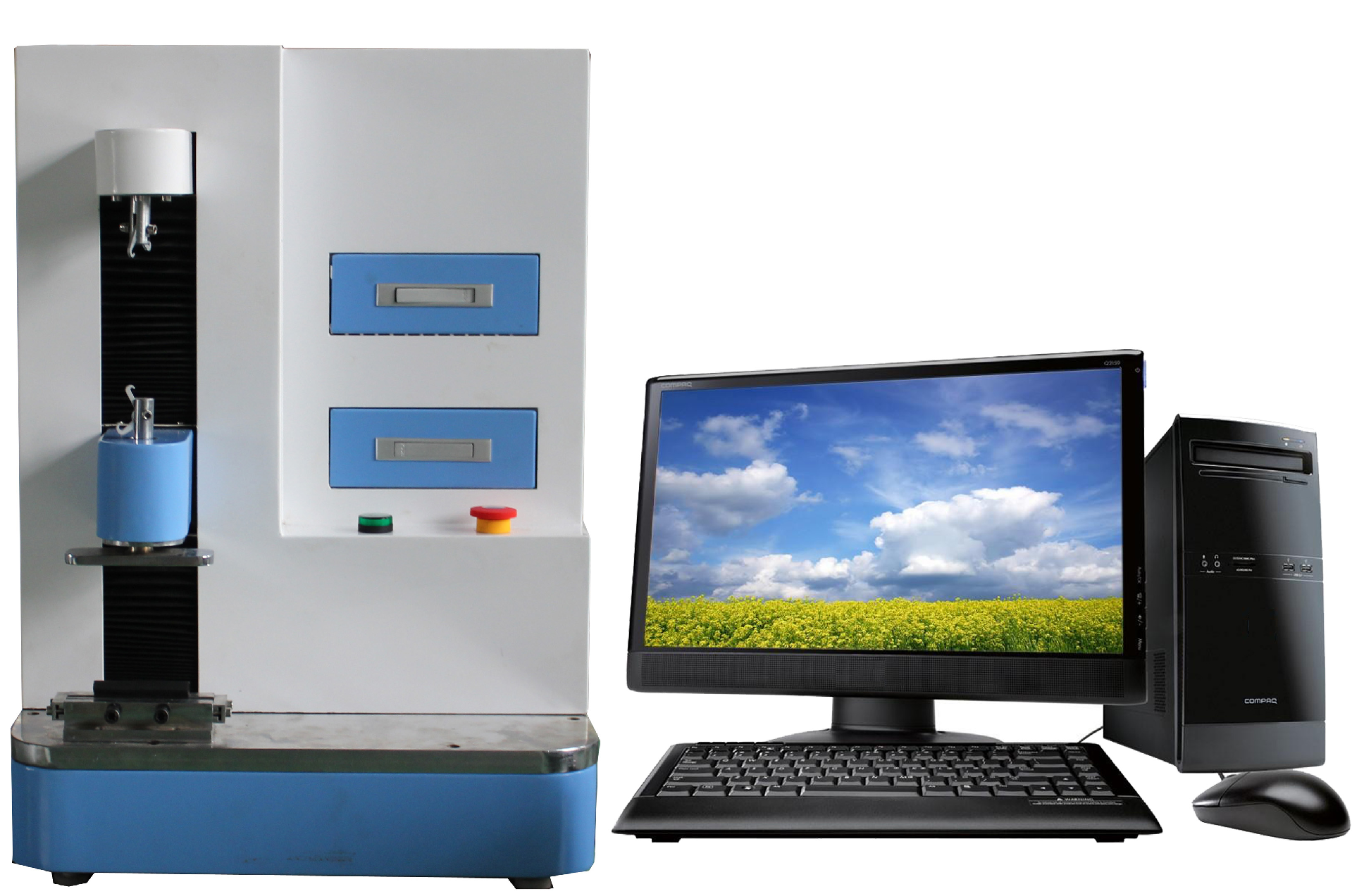 微機控制彈簧拉壓試驗機依據(jù)國家彈簧拉壓試驗機標(biāo)準(zhǔn)規(guī)定的技術(shù)要求制成,專業(yè)設(shè)計的自動控制和數(shù)據(jù)采集系統(tǒng),實現(xiàn)了數(shù)據(jù)采集和控制過程的全數(shù)字化調(diào)整。能對拉簧、壓簧、碟簧、塔簧、板簧、卡簧、、片彈簧、復(fù)合彈簧、氣彈簧、模具彈簧、異形彈簧等精密彈簧的拉力、壓力、位移、剛度等強度試驗和分析。試驗機主機與輔具的設(shè)計借鑒了日本島津的先進(jìn)技術(shù),所有重要零部件均采用日本進(jìn)口大型加工中心加工,保證試驗機的精度,所有精密杠均為磨削加工。采用該結(jié)構(gòu)保證機架有足夠的精度和剛度,同時實現(xiàn)高效、平穩(wěn)傳動。保證了主機的耐久性。外形美觀,操作方便,性能穩(wěn)定可靠。計算機系統(tǒng)通過控制器,經(jīng)調(diào)速系統(tǒng)控制精密電機轉(zhuǎn)動,經(jīng)減速系統(tǒng)減速后通過精密絲杠副帶動壓盤上升、下降,完成試樣的壓縮等力學(xué)性能試驗。